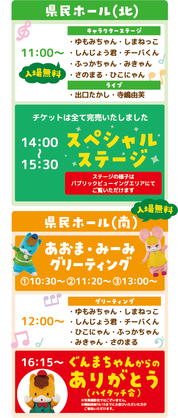 有料 限定300席 (事前申し込み・抽選) スペシャルステージ 会場:県民ホール(北) 開場 : 13:00 / 開演 : 14:00